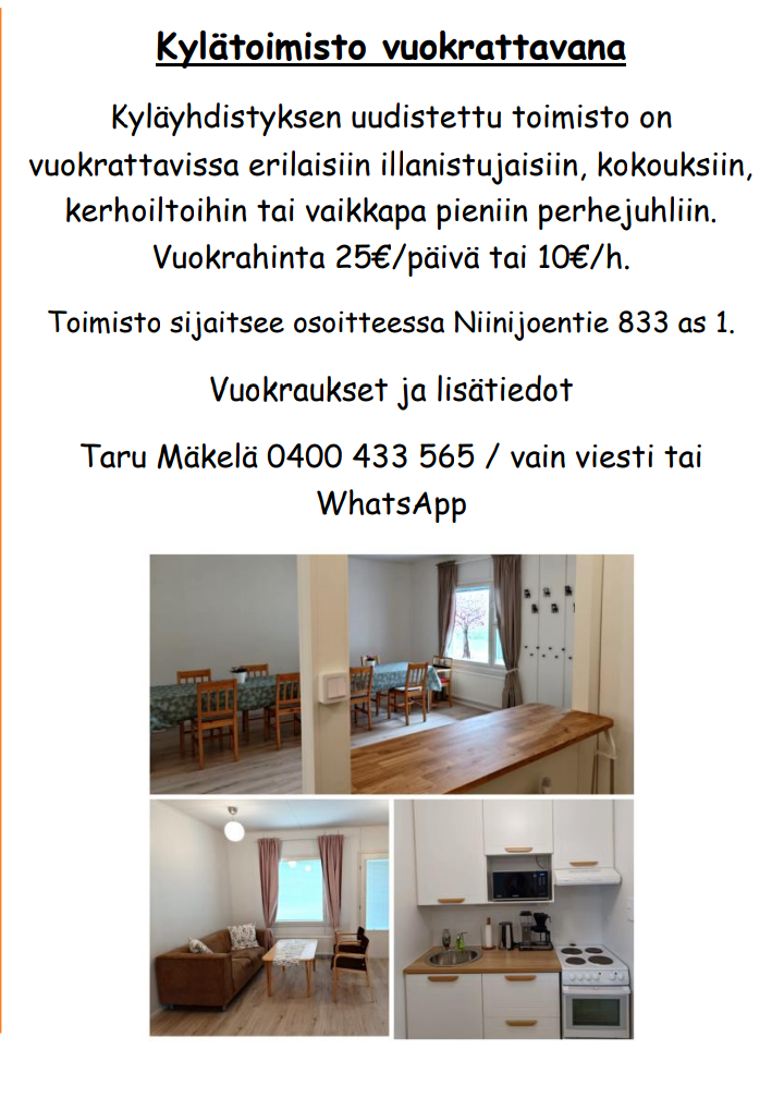 Niinijoen Seudun Kyläyhdistys ry järjestää monenlaista toimintaa, kuten liikuntatapahtumia koko perheelle, teatteri- ym. retkiä ympäri vuoden.