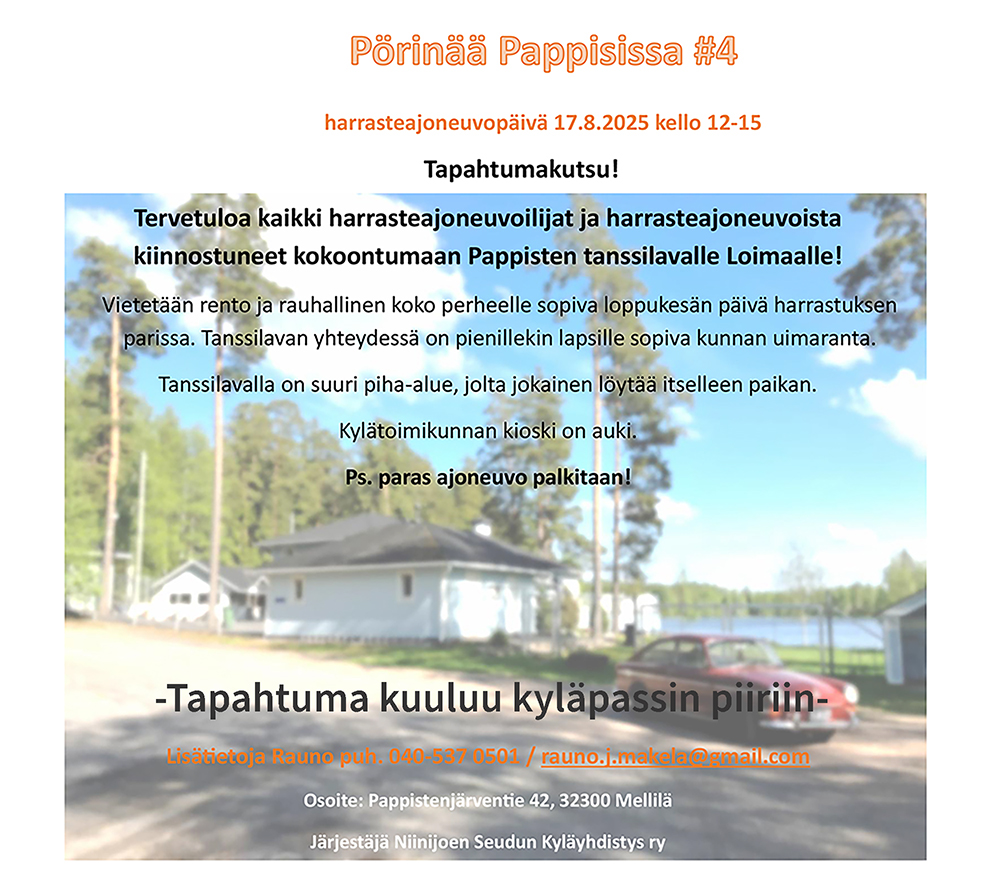 Niinijoen-Pappisten alueella asuu yli 700 asukasta. Meillä on tarjolla liikuntaa, kulttuuria ja aktiivista yhdistystoimintaa. Eloisassa kylässä on alakoulu ja päiväkoti. Kertunmäellä on hienot lenkkeilymaastot ja talvella hiihtoladut. Yksi kaupungin uimarannoista pukutiloineen sijaitsee Pappisten Isojärvellä, jonka läheisyydessä olevan Ylätuvan sauna lämpiää keskiviikkoisin ympäri vuoden. Toukokuusta elokuuhun pääsee Pappisten lavalla perjantai-iltaisin tanssimaan ja tanssikursseillekin voi osallistua. Lava sekä Ylätupa saunoineen ovat vuokrattavissa yksityistilaisuuksiin. Krekilän Myllyn läheisyydessä on hieno luontopolku kierrettäväksi.